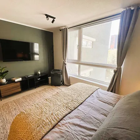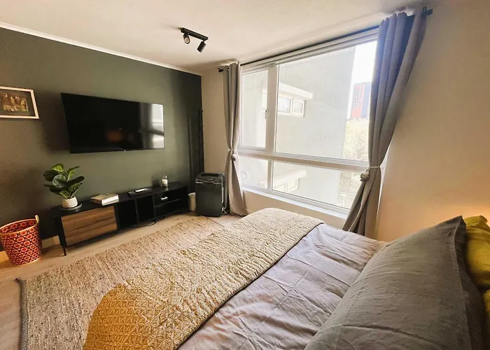 Among the self-catering amenities provided is a fully-fitted kitchen with a microwave oven, tea and coffee making equipment, and a refrigerator. Hom I Depto Studio Nuevo En Metroirarrazabal Nunoa Gb314 Apartment is in front of Malaquias Concha / General tamante bus station.